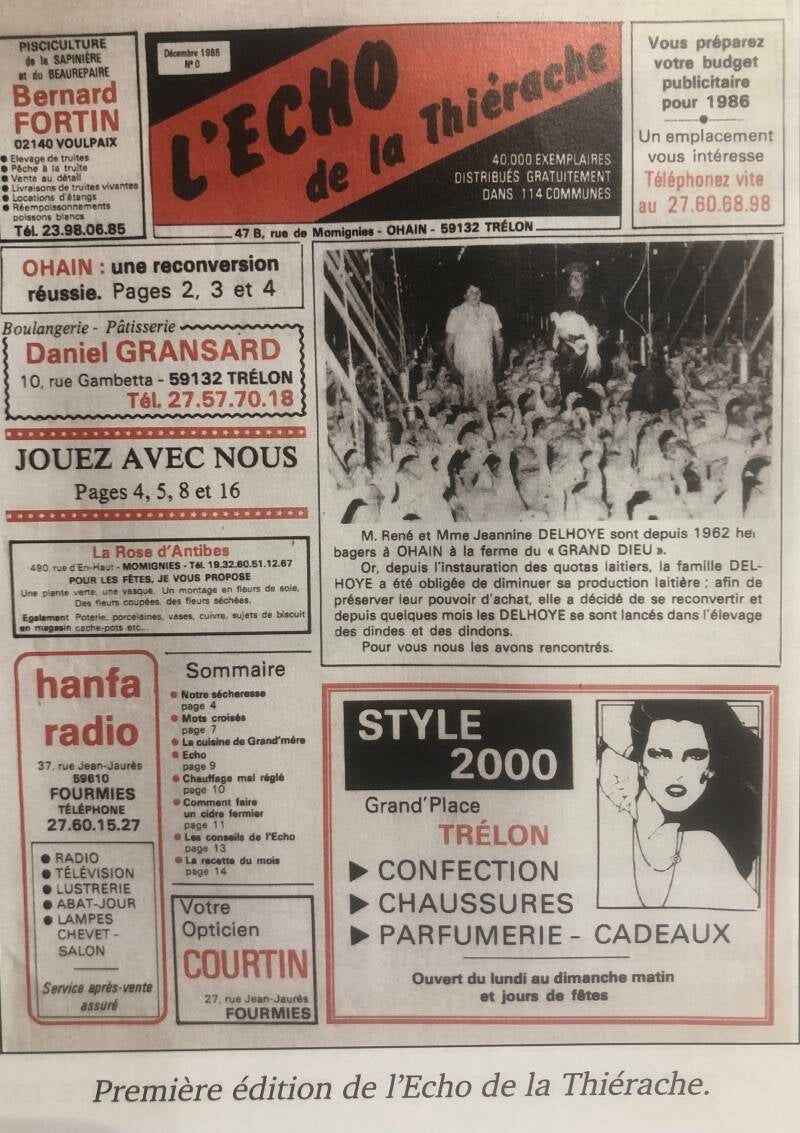 Je décide donc de créer un journal publicitaire que je nomme « L’écho de la Thiérache. » J’en deviens le responsable de la publication.