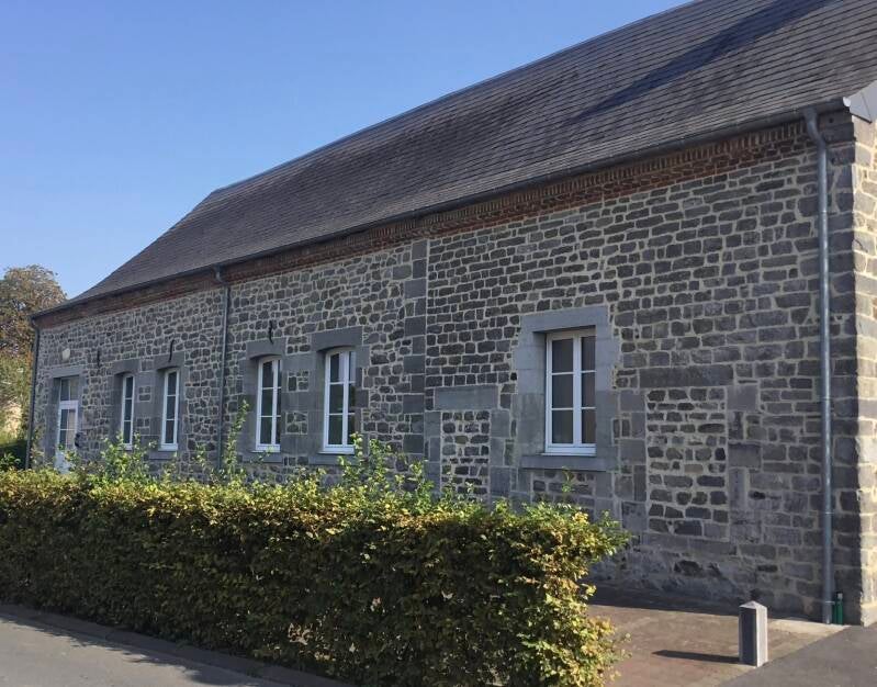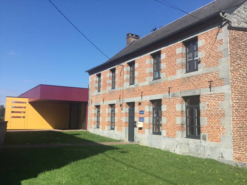 Le presbytère rénové avec le restaurant scolaire en arrière plan.